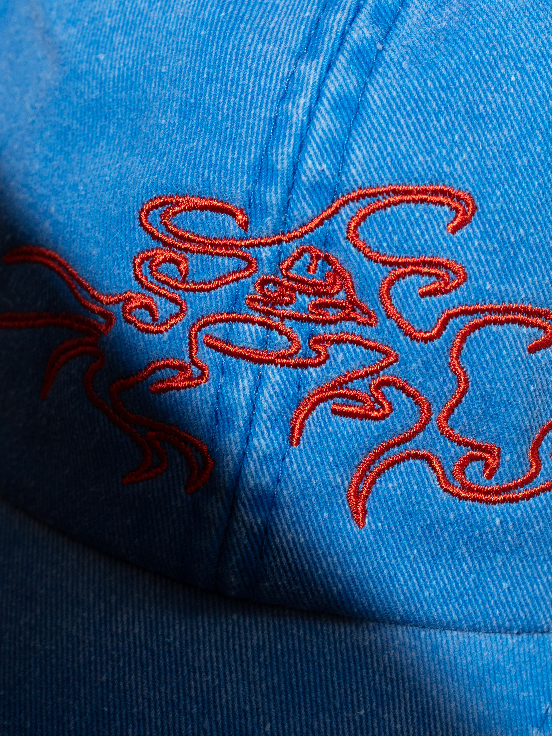 Manufactured from 100% heavy washed cotton in China. 260 gsm. Unisex. Embroidered by Kirka Studio. Low profile 6 panel design. Self-fabric strap with brass effect buckle. This product has undergone a specific wash to give it a worn and faded look, slight variations in shade may arise.